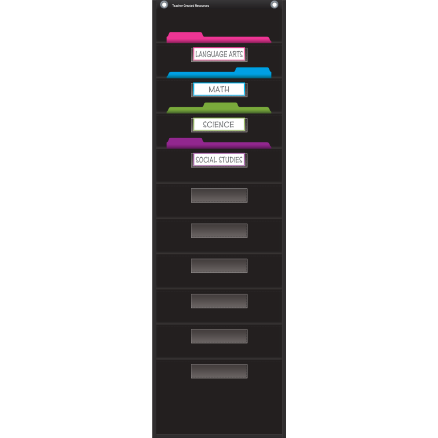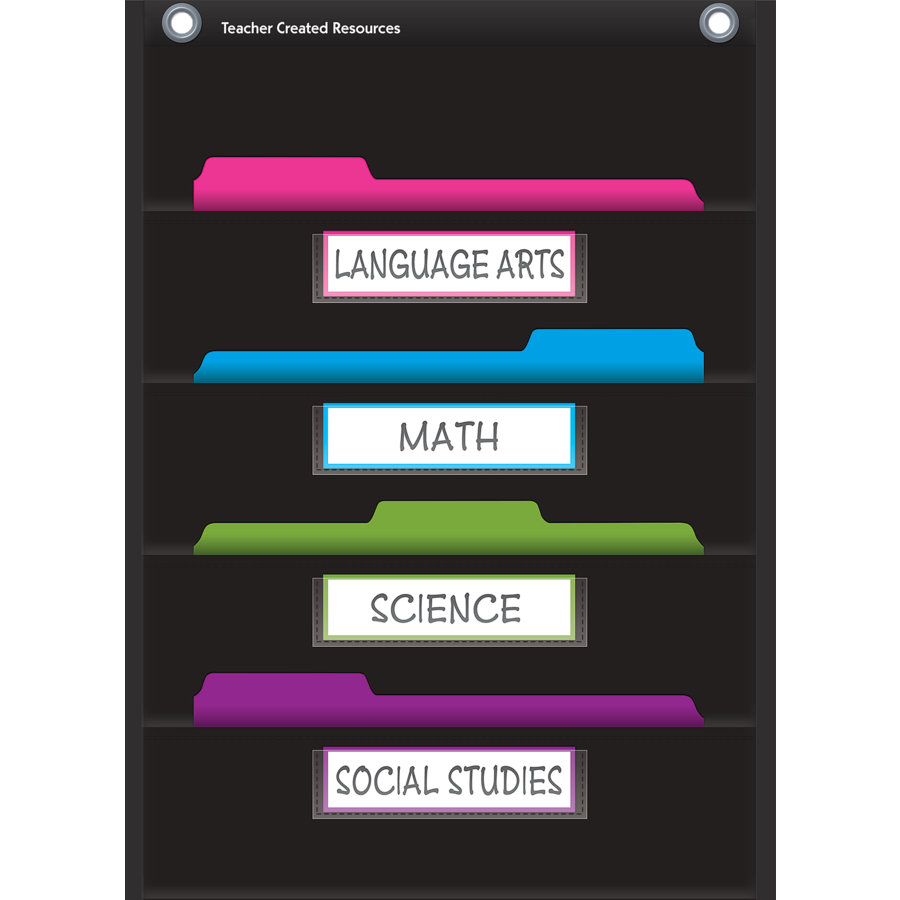 These lightweight and durable pocket charts feature colorful designs and hang easily from sturdy, metal grommets. 10 folder-sized pockets. Clear Label holders. The non-porous surface is easy to clean and can be wiped down or sprayed with disinfectant to help prevent the spread of germs. Measures 14" x 58".