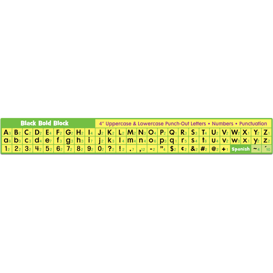 Use these letters to create bulletin boards, classroom centers, signs, banners, and other displays. They punch out easily and are coated for durability. The colors and designs coordinate with popular decorative products.