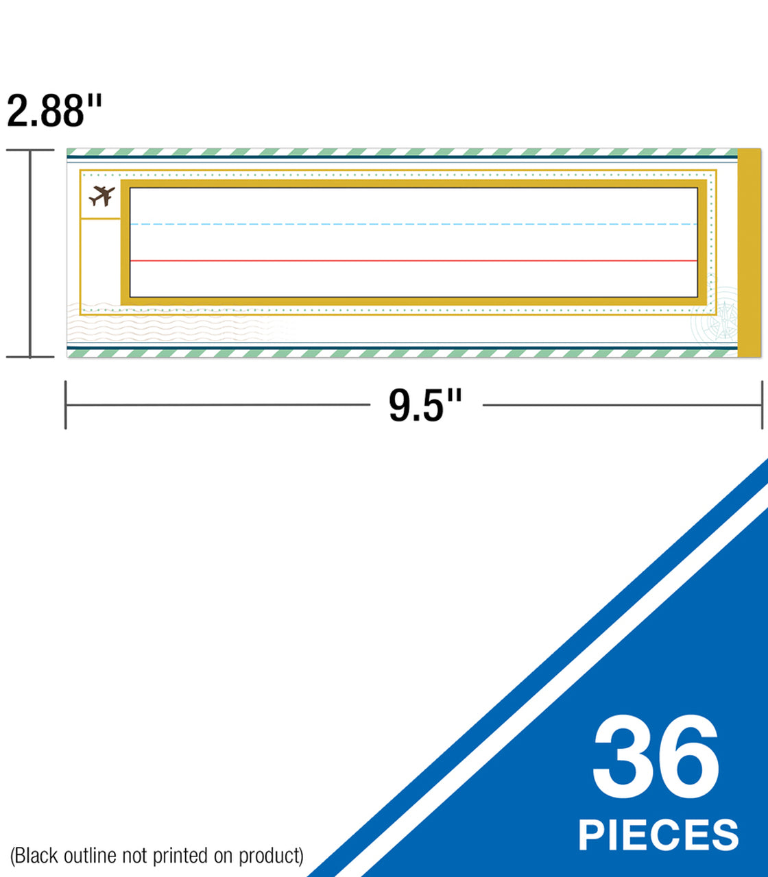 Carson Dellosa's Let's Explore Nameplates provide an easy way to label and organize for a successful school year. Each nameplate in this 36-pack measures about 9 1/2 inches x 3 inches to fit on desks, lockers, cubbies, and more with ease. Each student nameplate features an airplane icon and a passport stamp, with ample writing space for students to write their names and personalize each nameplate. These retro nameplates are sure to add a fresh and happy touch to any labels or organizational needs.