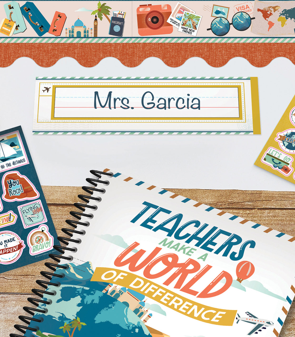 Learning is the passport to endless adventures with Carson Dellosa's Let's Explore Nameplates. Personalize students' desks with vibrant nameplates that feature a writing space and an airplane icon and a passport stamp to entice a sense of adventure.