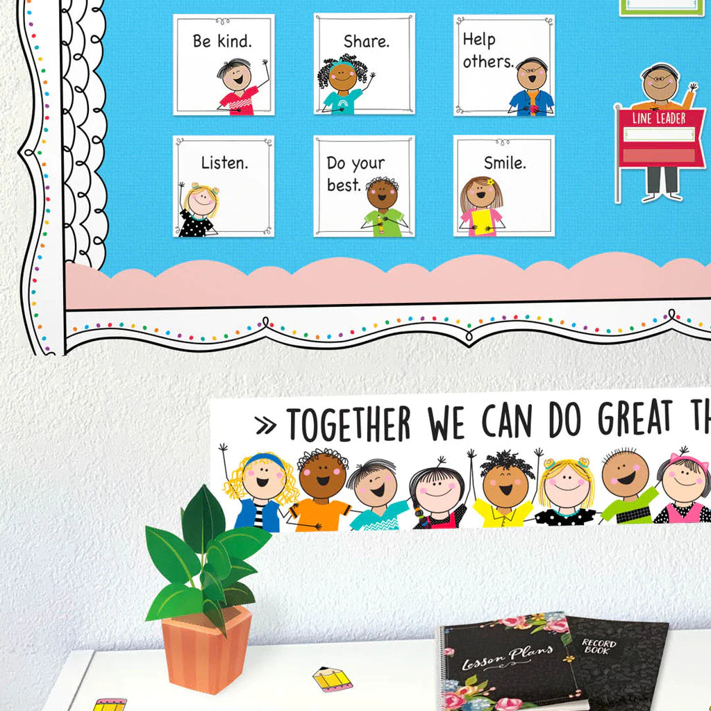 Add a touch of diversity to your learning displays and activities with these Stick Kids 6" Designer Cut-Outs! These cut-outs are perfect for class messages, writing assignments, learning center activities, accenting bulletin boards, and more! Use them to give special recognition for a job well done or to write a positive note to a student or parent. The cut-outs can also be used to make quick and easy labels on cubbies, student folders, supply bins, and binders.