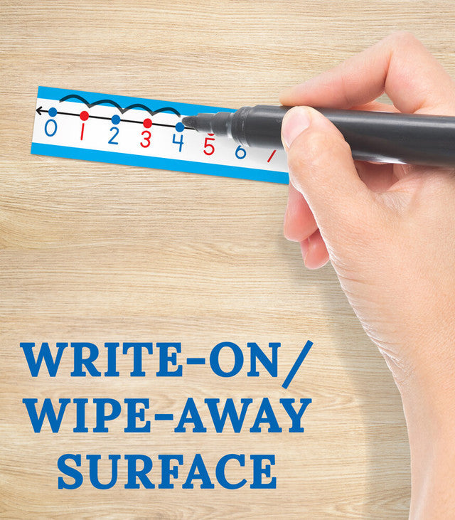 Each number line desk tape set includes 30 pieces (22” x 1.5” each) that feature numbers from 0 to 30. Color-coded for even and odd numbers, this math resource features a write-on/wipe-away surface to make it easy for students to use over and over! A resource guide is also included.